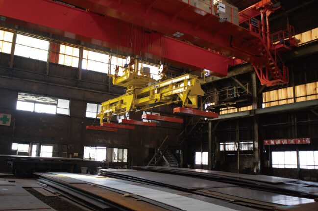 当社は1935年の創業以来、福岡県北九州市を拠点に建築物や船舶、橋梁などで使われる鉄鋼の切断・加工を主軸とした厚板加工・販売(厚板シヤリング業)を展開しています。厚中板においては、レーザー切断機やNCプラズマ切断機、NCガス切断機を使用して切断を行っています。本社工場と大牟田工場による2工場体制のもと、あらゆる形状の鋼板の精密切断・開先切断に対応し、中・厚鋼板の月産能力は2,000tを誇ります。厚中板のなかでも、構造物の要所に用いられるものは、とくに鋼板の高級鋼化とよりシビアな切断精度が要求されるため、最高・最良の技術とシステムを活用して業務にあたっています。